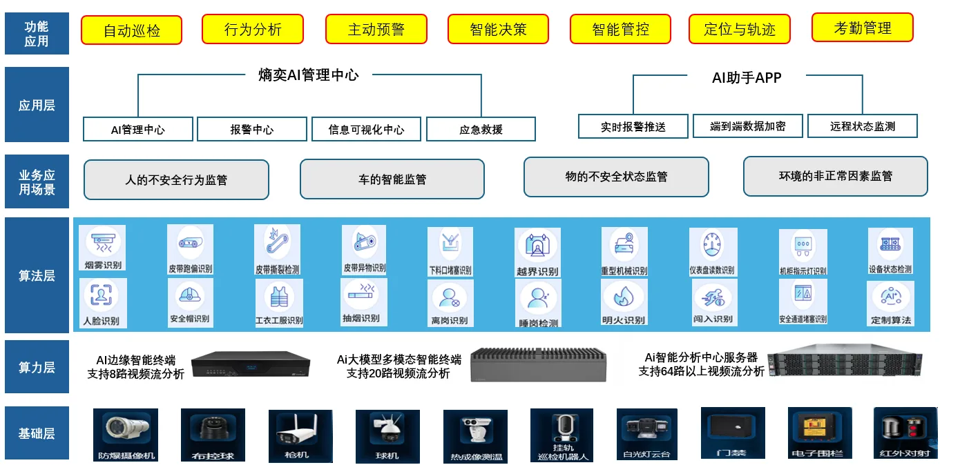 熵奕信息科技智慧火电AI视频分析解决方案对火电厂生产全流程(如锅炉运行、输煤皮带、汽轮机、脱硫脱硝等场景)进行实时视频监控与智能分析,AI视频系统可自动识别设备异常、人员违规行为、环境风险隐患,并联动预警与决策支持系统,实现从“人工巡检”到“智能感知”、从“被动响应”到“主动预防”的跨越式升级,助力火电企业构建安全、高效、绿色的智慧电厂。